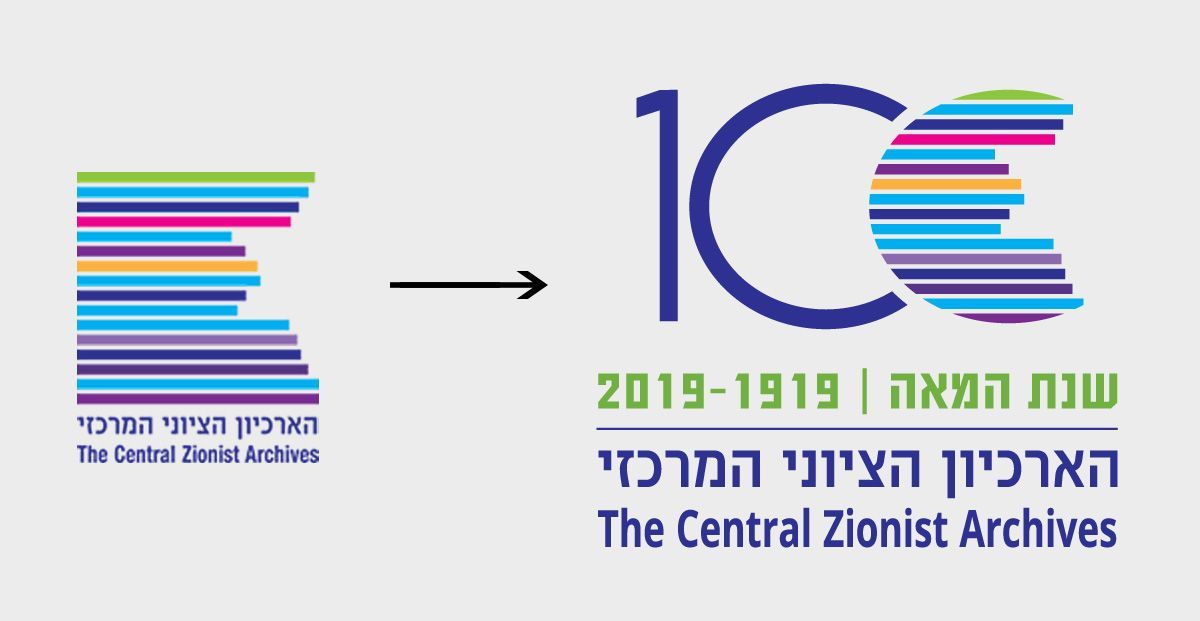 לוגו שנת המאה של הארכיון תוכנן לבקשת הלקוחות לקראת פעילויות שונות שהמוסד ארגן לציון שנה זו. היה צורך למצוא פתרון למספר בקשות: שילוב אלמנט מהלוגו הקיים, שילוב של הספרה 100 והכנסת טקסט המציין את שנות הארכיון.